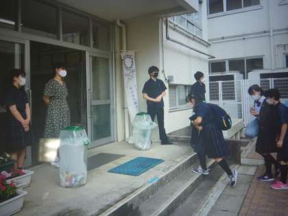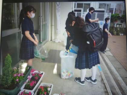 生徒会が企画をして、昨日と今日の朝昇降口で、エコキャップの回収を行いました。