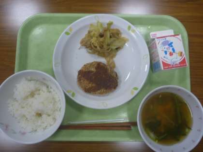 ご飯・みそ汁・きんぴらコロッケ・煮びたし・牛乳です。