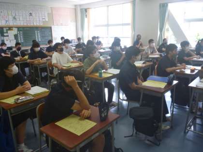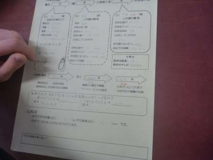保育の単元で、各自、自分か生まれた時に何グラムで、身長は何センチだったか等を家で聞いてきたものを、プリントを見ながら答えています。