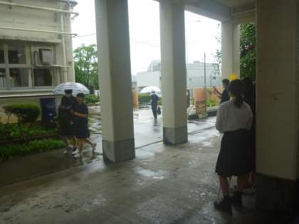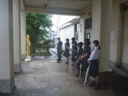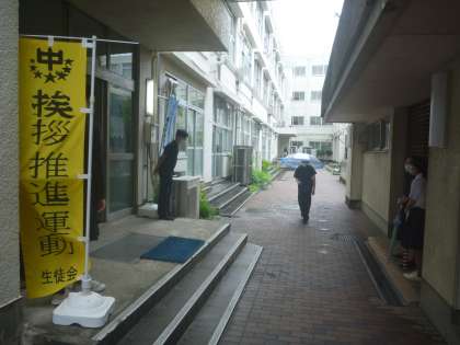今朝は雨ですが、あいさつ運動を図書委員と生徒会役員が8時から、渡り廊下の下と昇降口で「おはようございます」と登校する生徒に元気に声かけをして、今日もスタートです。