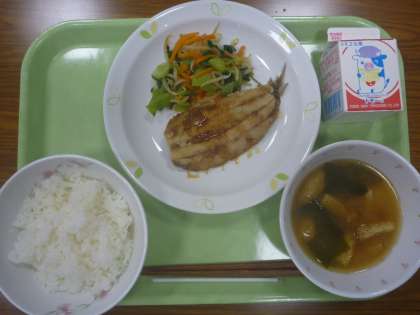 ご飯・みそ汁・いわしのピリ辛揚げ・おひたし・牛乳です。