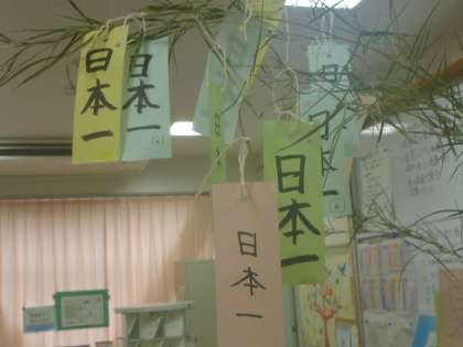 司書さんが持ってきてくださった笹に、あっという間に願い事が。