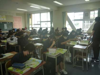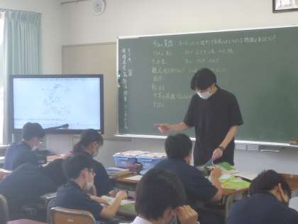 地図帳を見ながら、プリントの空欄を埋めて、答え合わせをしています。