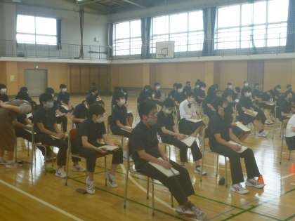 みんな話を聞きながら、メモをとっています。今日から、またしっかり勉強頑張りましょう!