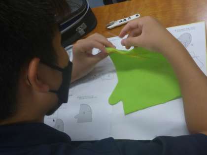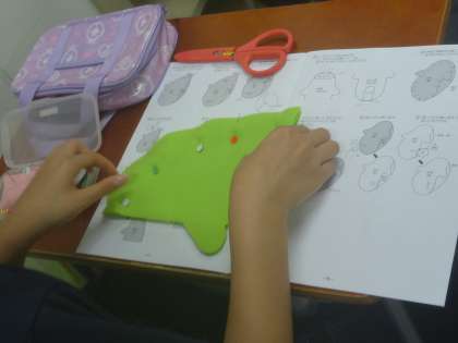 保育の授業で、かわいい動物のぬいぐるみを作成しています。