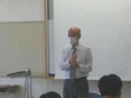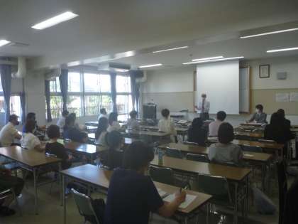 9時から、視聴覚室で校長先生と進路主任による教育懇談会が行われてます。