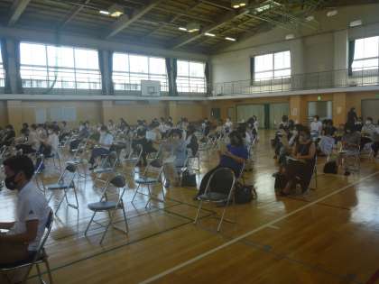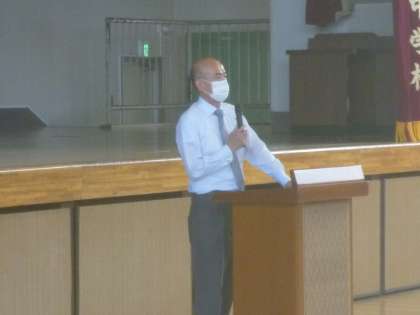 10時から、体育館で教務から評価や通知表について。生活指導から、学校生活について。校長先生から、感染症予防の徹底・タブレットの使用について等の話がありました。