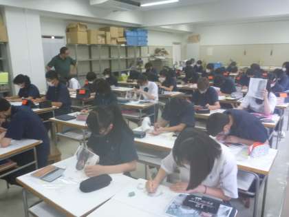 「自画像」を書こうということで、タブレットを見ながら、写真を見ながら、まずは、鉛筆で下絵を描いています。出来上がりが、楽しみです。