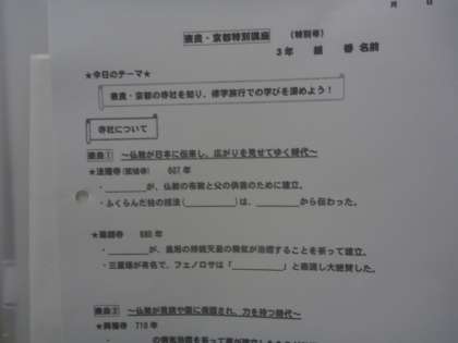 9月に行く予定の修学旅行の事前学習を学年で行っています。