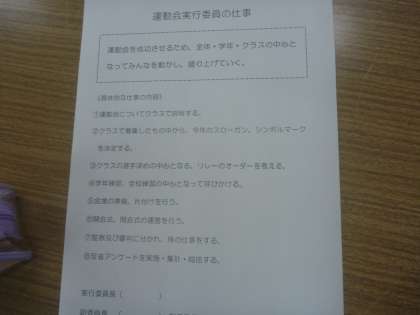 10月30日の運動会に向けて、昼休みに初めての集まりを行いました。