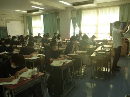オンラインの生徒にも、テレビ画像と同じものが配信されています。