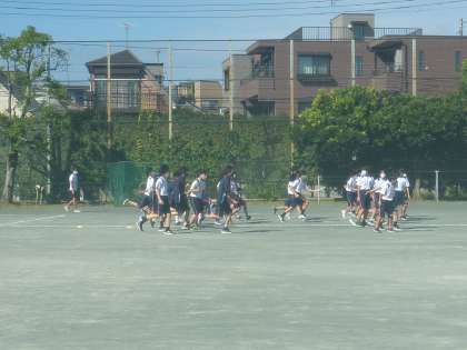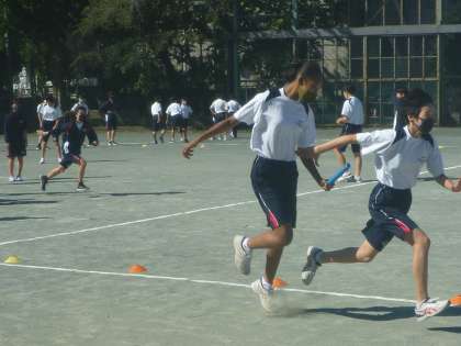 秋晴れの清々しい校庭で、バトンパスの練習が始まりました。