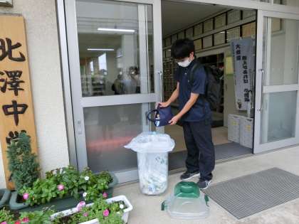 今朝と明日朝は、生徒会が昇降口でエコキャップの回収を行っています。