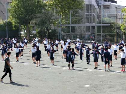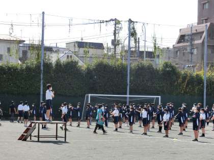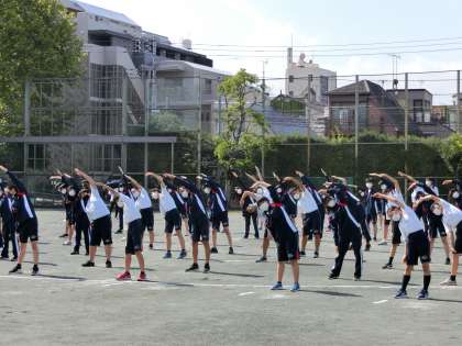 テストが終わって、全校で初めての練習は、ラジオ体操から。