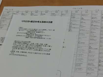 来週クラスで、保健給食委員が「リクエスト給食」は何がいいか?希望をみんなに聞くために、放課後、委員が集まって説明を受けています。