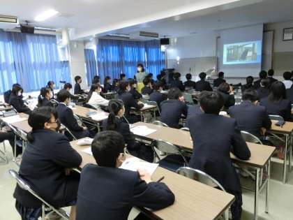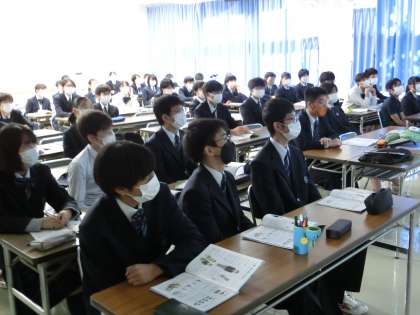 視聴覚室で、受験の面接の受け方について、ビデオと冊子で学習しています。