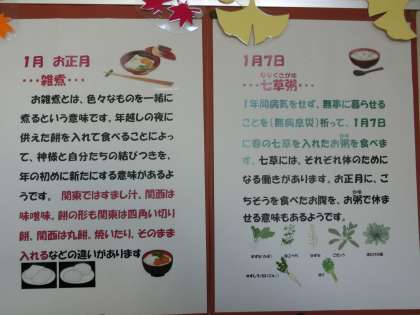 「知っていますか?日本文化」と題して、12月・1月に食するいわれが紹介されています。