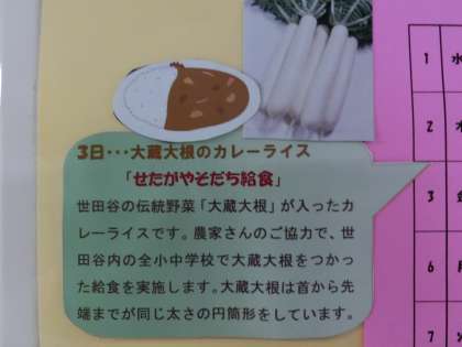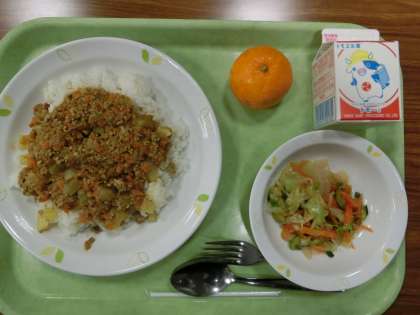 大蔵大根のカレーライス ・こんにゃくサラダ ・みかん・牛乳です。