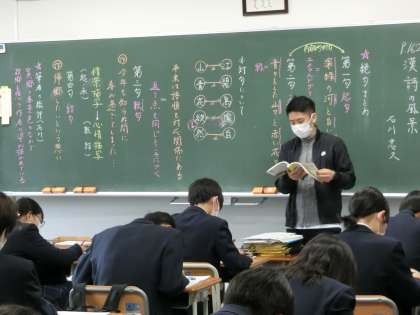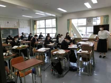 2年生国語は「漢詩」・3年生少人数数学は「いろいろな問題」を解く練習・3年生少人数英語は「寄付についてわかる」の音読をしています。みんな真剣に取り組んでいます。