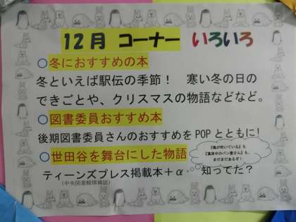 1階の廊下の掲示板に、12月からの特集が掲示されています。