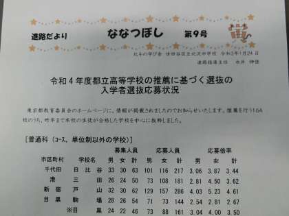本日、生徒に配布しました。HPにも掲載しましたので、ご確認下さい。