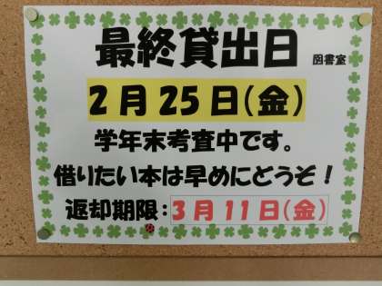 3年生で、ずっと本を借りたままの人は、必ず早めに返却してください。