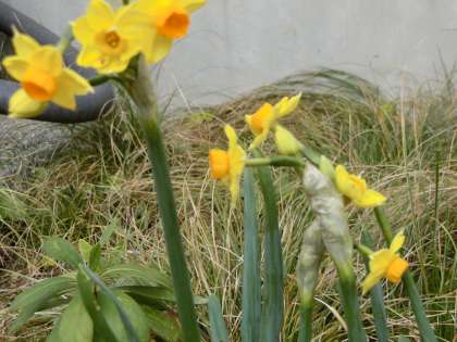 こんなに寒いのに、中庭には水仙が綺麗に花を咲かせています。