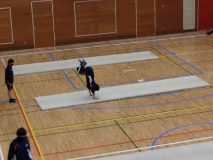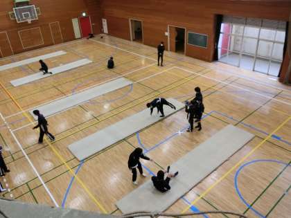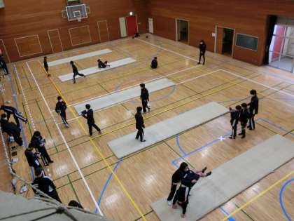 タブレットで友達の様子を撮影し、良いところや改善点をアドバイスしたり、補助に入ったりしています。