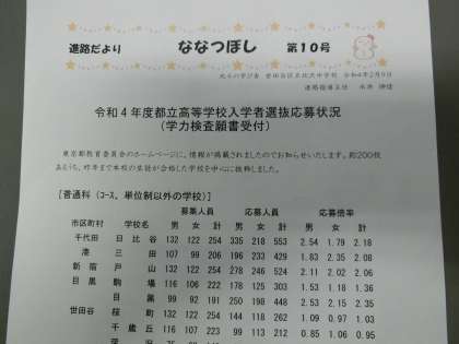 本日、生徒に配布しました。また、HPにも掲載しましたので、ご確認下さい。