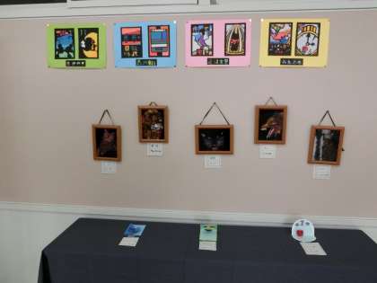 第2美術室には、美文字部・表現力向上部・美術部の作品も、美術の作品と共に展示されています。