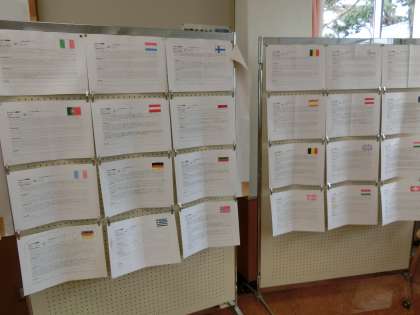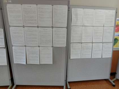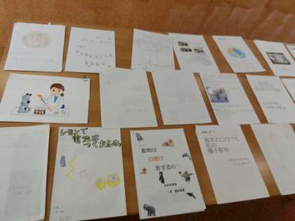 2階ランチルームに理科・社会・数学の課題が展示されています。