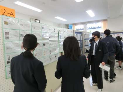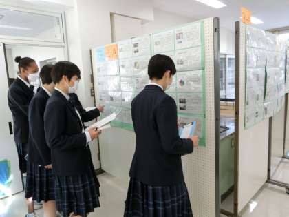 5時間目はクラスごとに展示見学をしながら、感想をカードに記入しています。