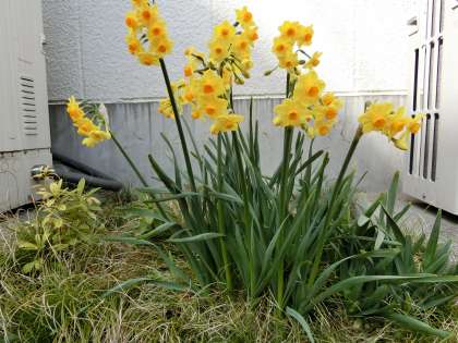 中庭の池の亀もずっと池の中で冬眠していましたが、今週目覚めて?池の中のブロックで日光浴しています。職員室前のスイセンも元気に花を咲かせています。