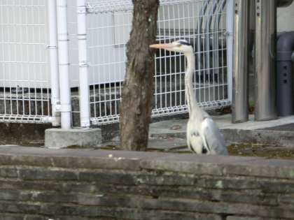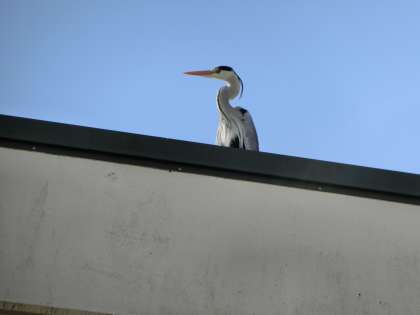 ここ1週間位、中庭の池の金魚か鮒を狙って?白鷺がずっと居ます。今は、体育館の屋根に。