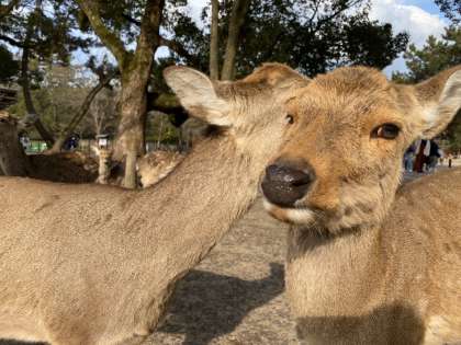 奈良公園に到着しました。 たくさんの鹿がいて、みんな大興奮です。