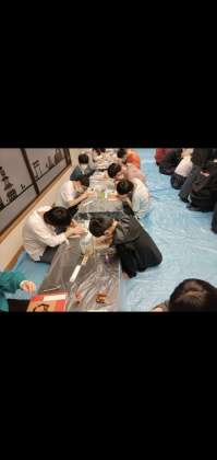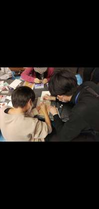 製本から型絵付けまで、思い思いに作業に取り組んでいます。楽しそう!