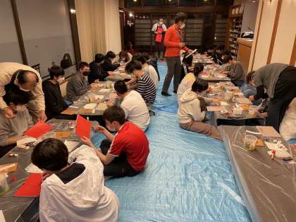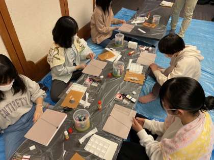 ひもを通すのに苦戦してます。いよいよ色付けへ。