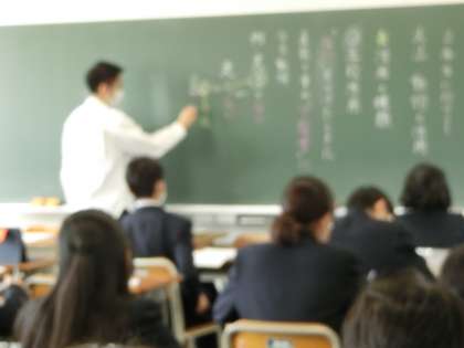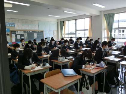 2年生に向けての文法の学習を真剣に聞いています。1年生も、もうすぐ先輩になります。