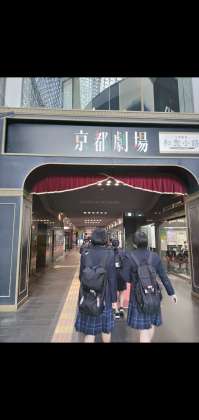 京都駅散歩の最後は、京都劇場のレッドカーペットを歩いてフィニッシュ!明後日の卒業式の予行練習になりました。