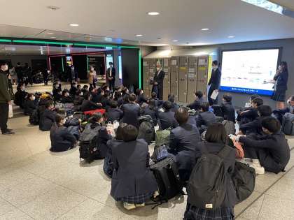解散式を行なっています。今日はゆっくり休んで明日に備えましょう。おうちの人にも、ぜひお土産をあげたりお土産話をしてくださいね。