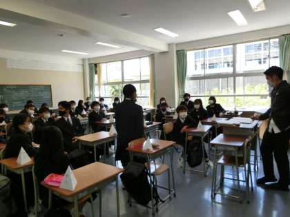 各クラスごとに、自己紹介や先生からのお話を楽しそうに聞いています。