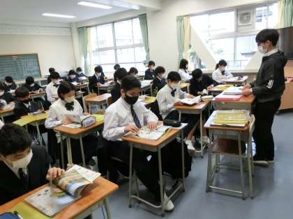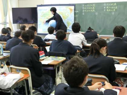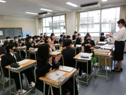 初めての教科の授業で、先生の質問に積極的に答えています。