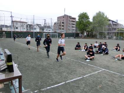 今朝まで雨が降ったりして、肌寒いですが、3年生男子は、校庭で10周の1500mのタイムを計っていました。