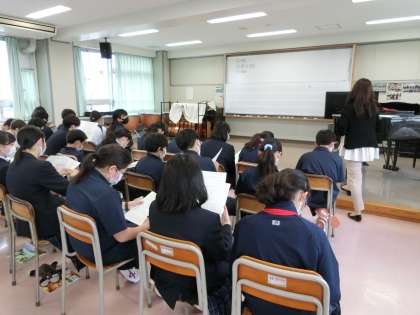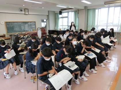 校歌の楽譜を貰って、難しい漢字の読み方にルビをふりながら、覚えています。