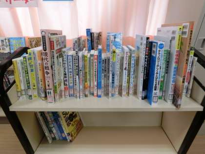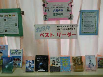昨年北中でよく借りられた本の特集と1年生の校外学習向けの特集と、先日弘済会から頂いた59冊の本です。