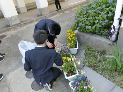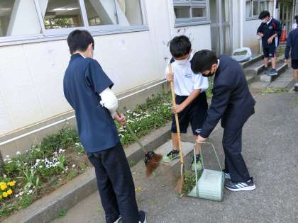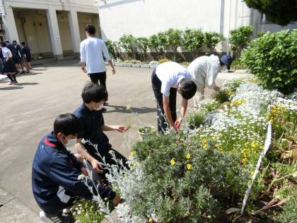 13時45分から、1時間強、雑草取りと枯れた花取りを丁寧に最後までやってくれて、花壇もすっきりしました。今日もボランテイア活動をしっかりやってくれました。ありがとう。