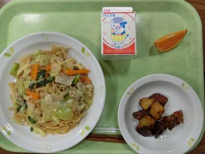 五目あんかけそば ・大学芋 ・なつみ・牛乳です。