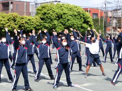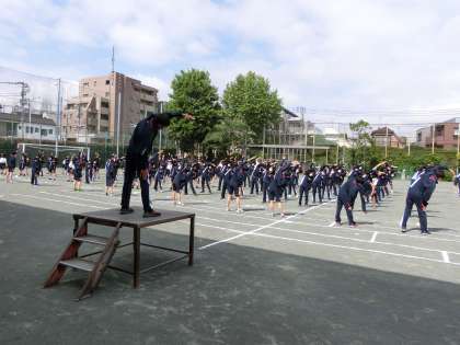 開会式・閉会式の流れの確認の後、ラジオ体操を行い、実行委員から「腕をしっかり伸ばしましょう」等のアドバイスがありました。