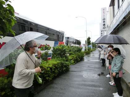 雨ですが、みんな笑顔で手を振って、8時5分出発しました。