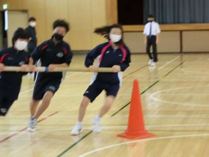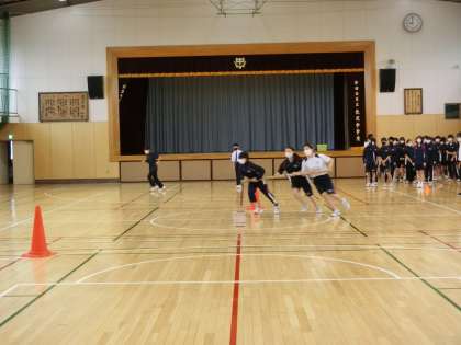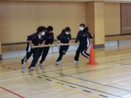 2年生体育は、運動会の学年種目の「台風の目」の練習を行っています。